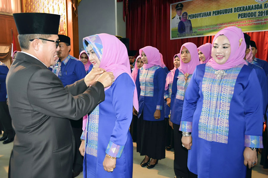 DUMAI - Walikota Dumai Zulkifli AS secara resmi mengukuhkan Ketua dan Jajaran Pengurus Dewan Kerajinan Nasional Daerah (Dekranasda) Kota Dumai masa bakti 2016-2021.