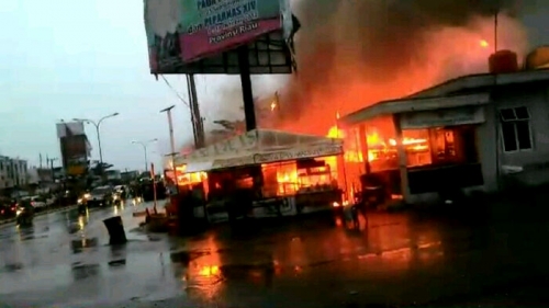 Gas Meledak Hanguskan 5 Petak Kios Semi Permanen di Pekanbaru