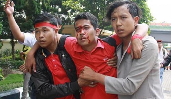 "Luka di kepala saya kemarin bukan karena terbentur aspal, tetapi dipukul polisi. Waktu itu kondisi tidak kondusif lagi. Saya mencoba menenangkan teman-teman. Tetapi secara tiba-tiba ada polisi yang memukul kepala saya. Seketika saya pusing,'' tuturnya.