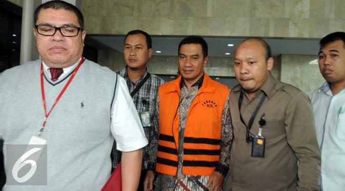 Saat meninggalkan Gedung KPK lengkap dengan seragam tahanan KPK berwarna orenge sekira pukul 14.50 WIB. Saat digiring ke mobil tahanan KPK, keduanya tampak tenang.