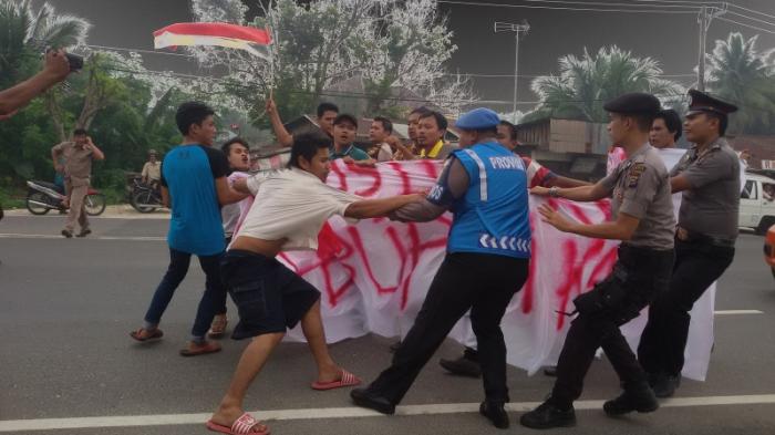 Spanduk Bertuliskan Kapolda Riau Beking Judi Mesin
