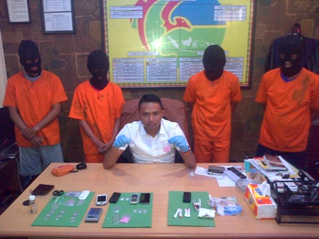 Tak tanggung-tanggung, empat tersangka berhasil dikarungi polisi, tiga diantaranya pengedar sabu-sabu sedangkan seorang lagi merupakan pengedar daun ganja kering.