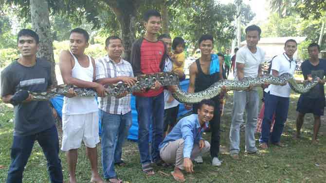 "Disini sudah sering warga menemukan dan menangkap ular berukuran besar. Beberapa waktu lalu ada juga ular jenis yang sama sepanjang 6 meter ditangkap setelah menelan seekor babi di perkebunan karet warga," tukasnya.