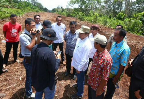 MERANTI - Bupati Kepulauan Meranti Drs H Irwan MSi melakukan monitoring langsung terhadap dua lokasi pembangunan jalan poros, Lukun - Seitohor dan Meranti Bunting - Telukbelitung, Kamis (10/10/2016).