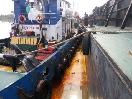 CPO Cemari Sungai, Polres Inhu Periksa Tongkang Royal Palma 18