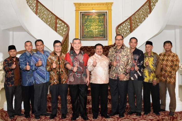 BENGKALIS - Bupati Bengkalis, Amril Mukminin menggelar ramah tamah dan silaturahmi dengan Kepala Badan Intelijen Negara Daerah (Kabinda) Provinsi Riau, Marsma TNI Rakhman Haryadi, di Wisma Daerah Sri Mahkota, Senin (15/1/2018) malam.