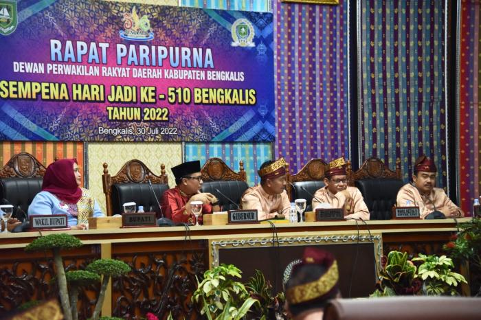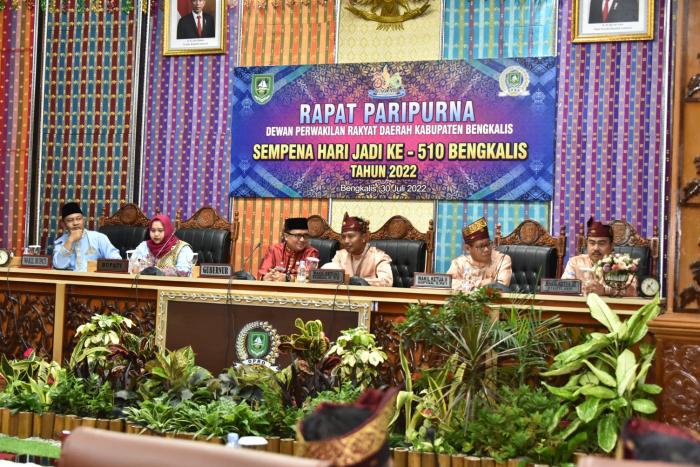 BENGKALIS - Dewan Perwakilan Rakyat Daerah (DPRD) Kabupaten Bengkalis, menggelar rapat paripurna sempena Hari Jadi ke 510 Bengkalis, Sabtu 30 Juli 2022.