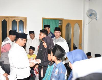 Bupati Bengkalis Amril Mukminin menyerahkan bantuan dan santunan kepada 127 penerima pada hari keenam atau malam ke tujuh Ramadhan, di Masjdi Sabilillah, Desa Pedekik, Selasa malam, 22 Mei 2018.
