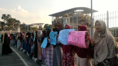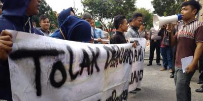 Seratusan massa yang menamakan dirinya dengan Gerakan Mahasiswa (Gema) Pembebasan Wilayah Riau gelar aksi demo di depan Kantor Gubernur Riau.