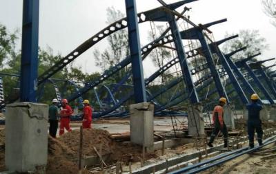 Pembangunan lampangan tenis di area Komplek Pertamina di Kelurahan Bukit Datuk, Kecamatan Dumai Selatan, Jumat (6/9) kemarin roboh dan menimpa tiga pekerja.